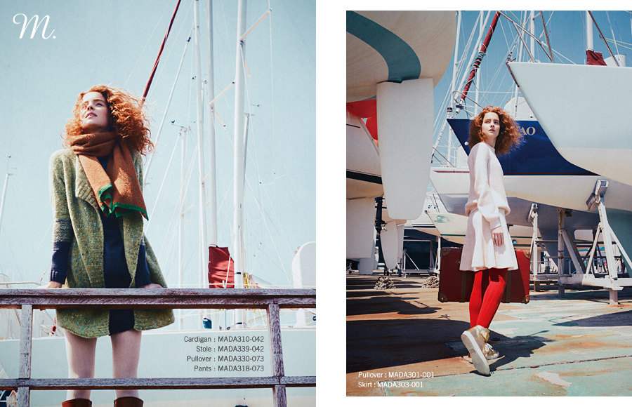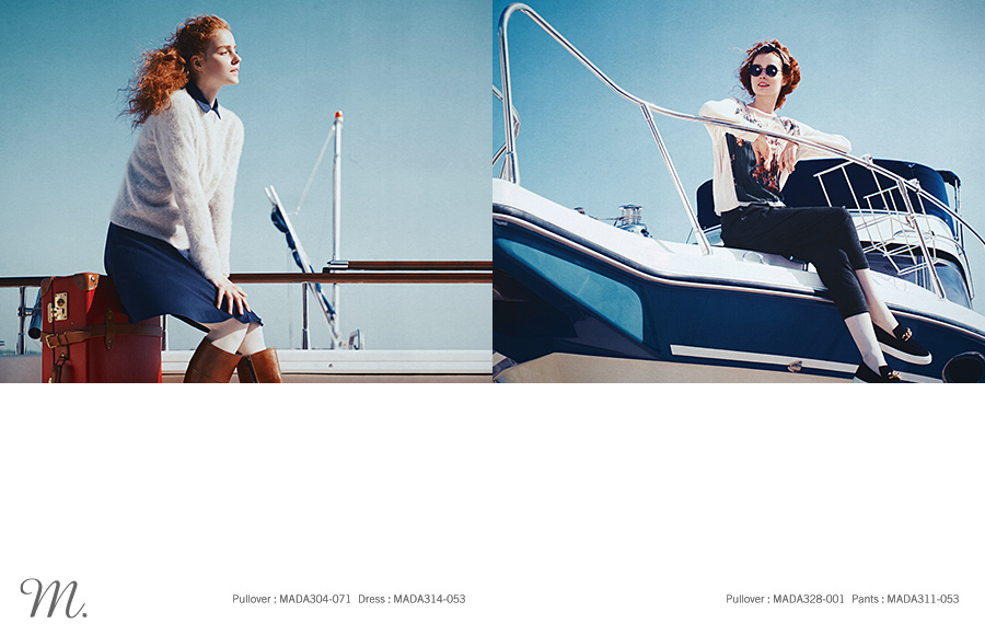 冬の風を受けながら船で旅する映画の一場面のようなコレクション。