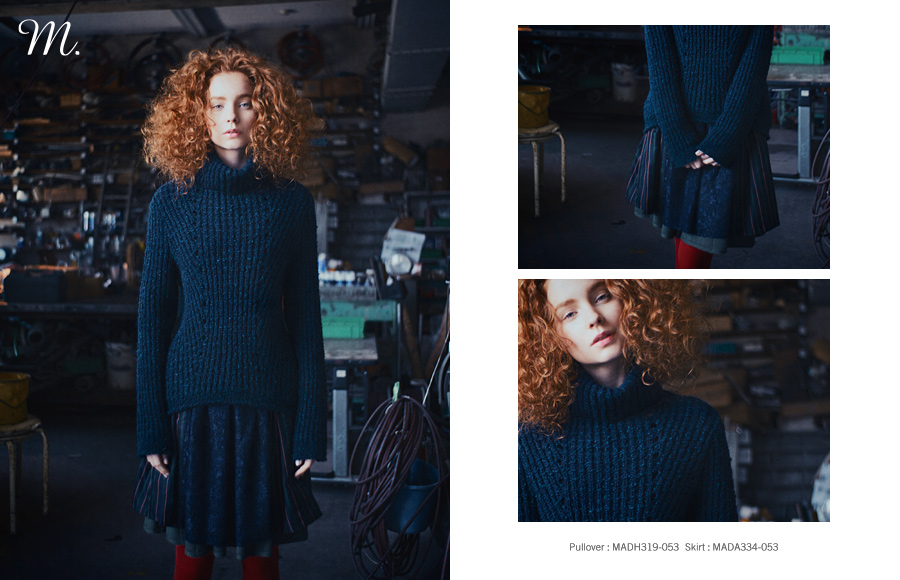 ニットの温かさとカジュアルさ、相反するシックな雰囲気が共存。