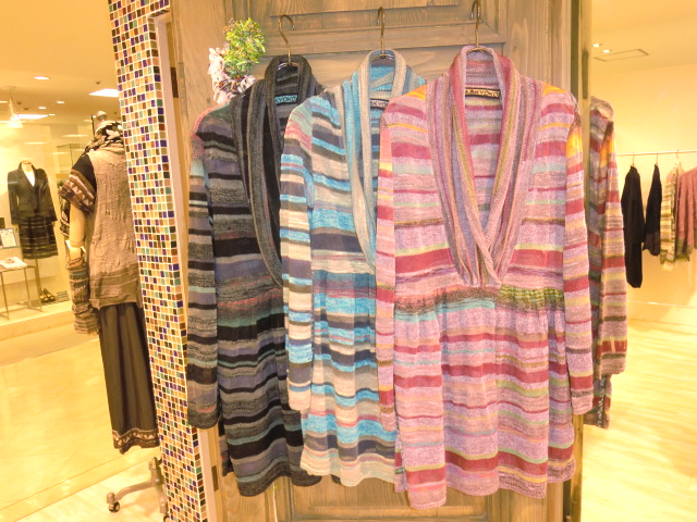 左側のカーディガンは、透け感があり、これから春夏の羽織りにぴったり♪