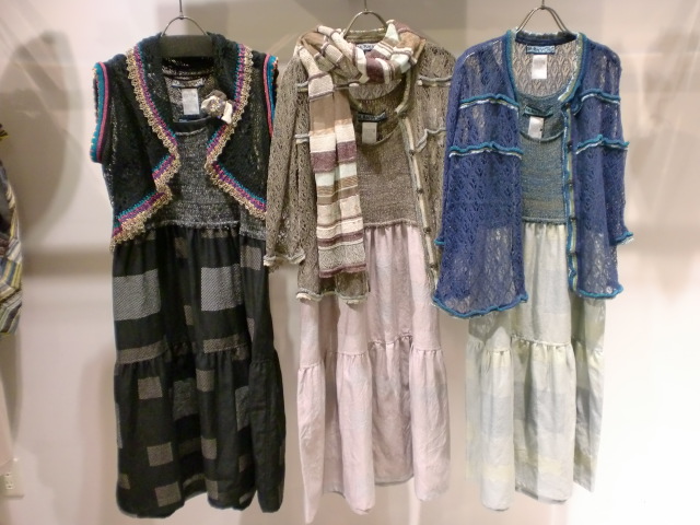 コットンジャージのワンピースにレギンス、ストールのコーディネート♪♪♪鮮やかなピンクのストールベストがアクセントになっていますね