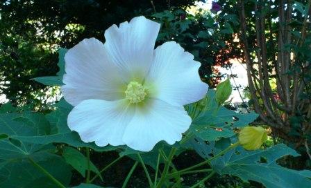芙蓉の華やかさが季節の移ろいの淋しさをいざないます