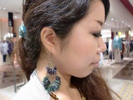 斎藤スタッフのピアス☺は、マサキヤーンを巻きつけただけなんです。存在感があり、とってもキュートですね!