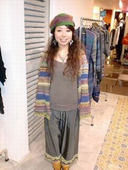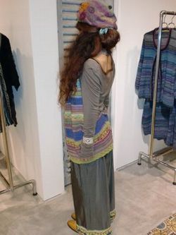 左:ショール21000円(税込)パンツ31500円(税込) 帽子12600円(税込)ボタンを止めてボレロ風に☆☆