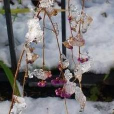 秋に色づいた紫式部に氷の飾りがキラキラと