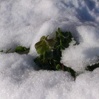 雪を掻きわけてクローバーが顔を覗かせています