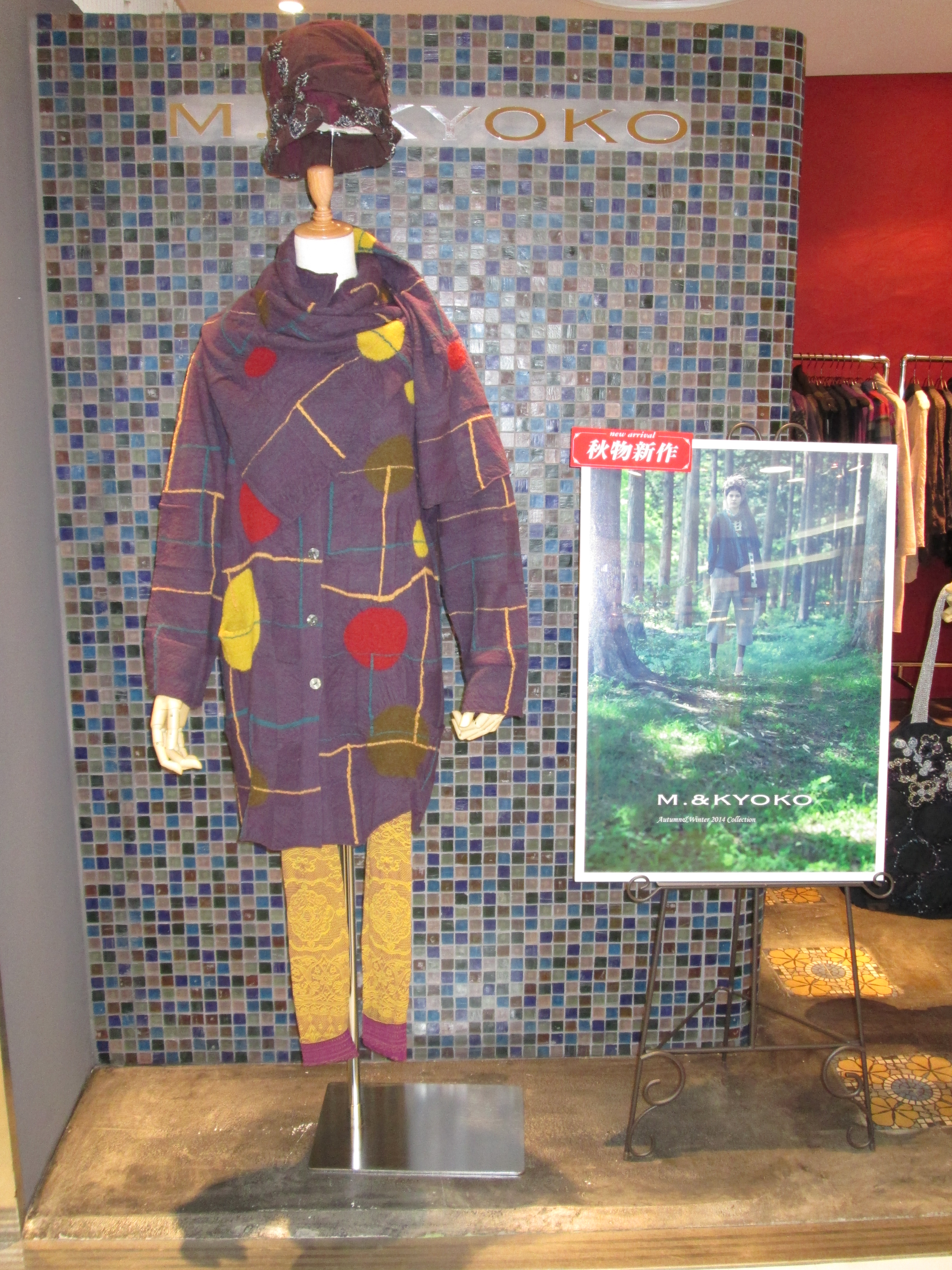 (右) ストール:¥14,700 アクセサリー:¥8,400 コート:¥71,400 ワンピース:¥44,100 レギンス:¥19,950