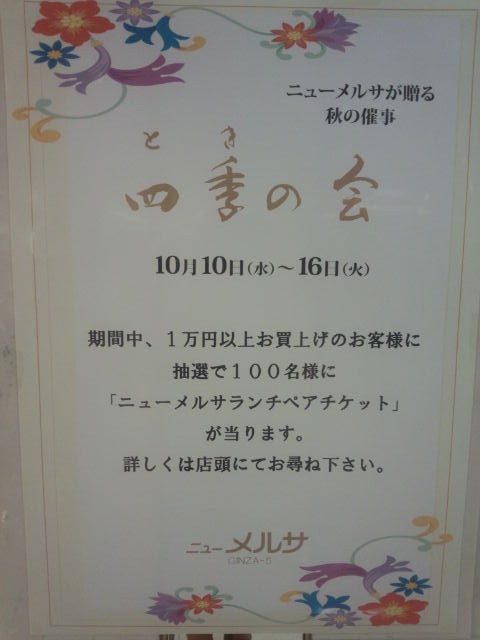 銀座ニューメルサでは10/10(水)より"四季の会"ランチペアチケットプレゼントを実施しております。