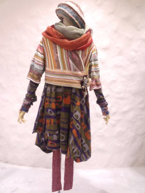 変わって(写真右)のコーディネートは(写真左)と同じシリーズのアシンメトリーワンピース(44.100円)に