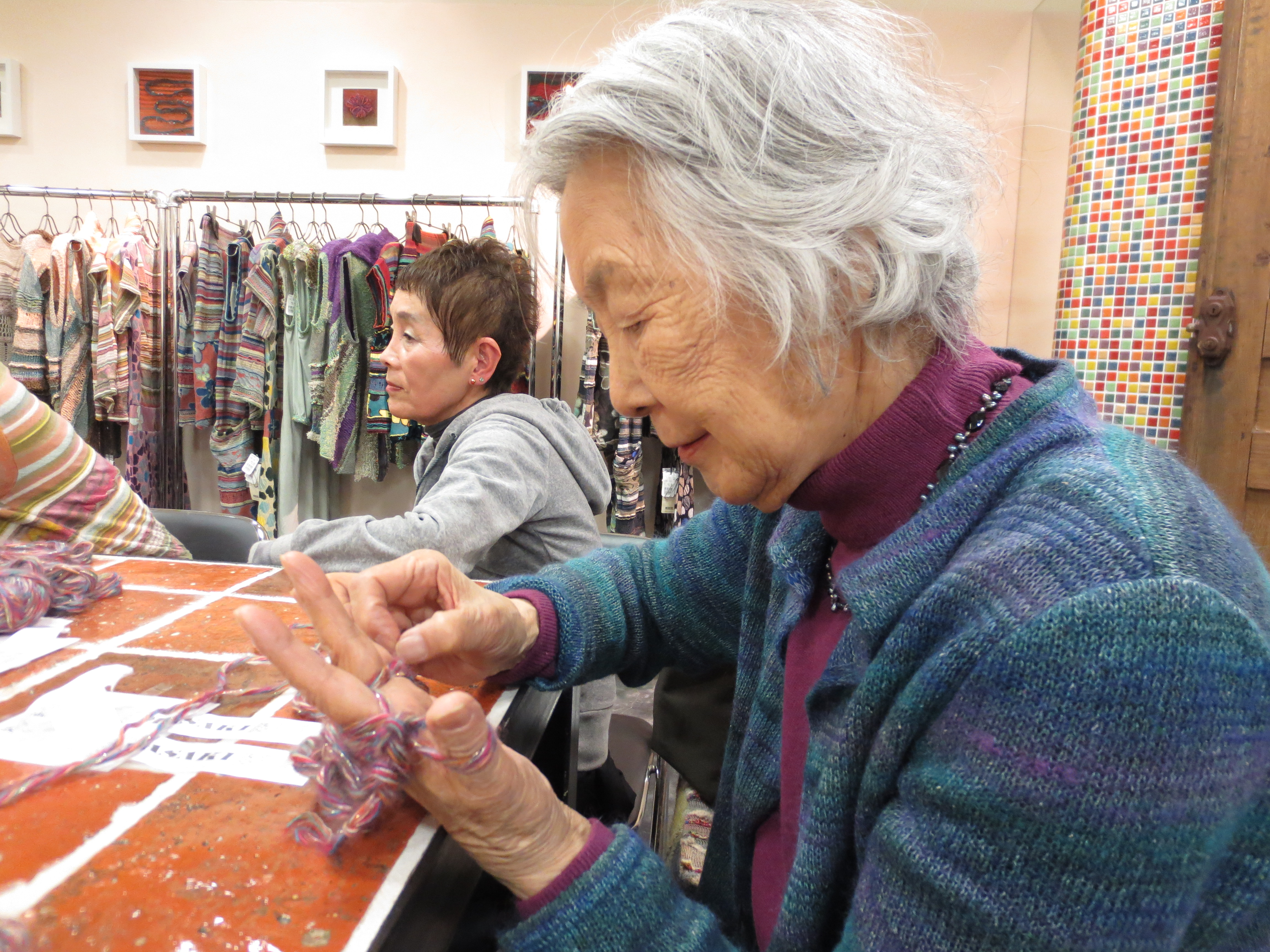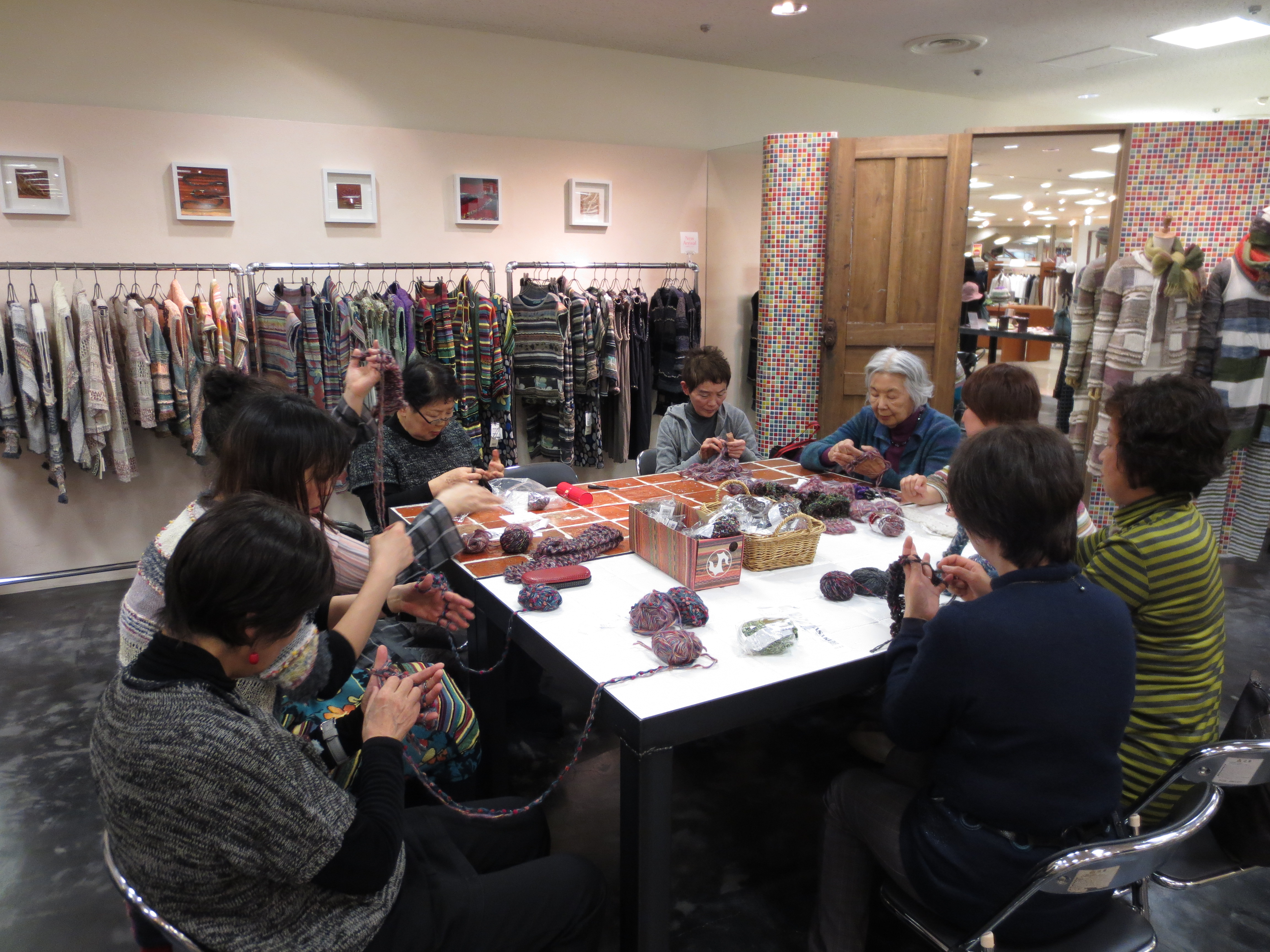 総勢7名のご参加で皆さん思い思いにマフラーとコサージュを作っていただきました。
