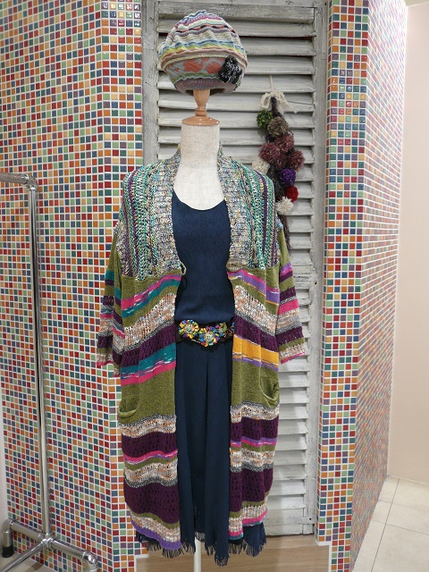 色々な色の糸を使っているので合わせるインナーで雰囲気が変わるのもコーディネイトの楽しみですよね☆