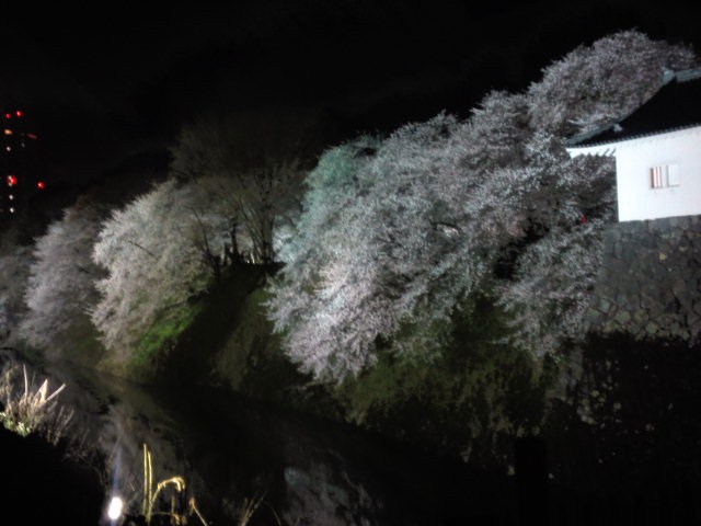 満開の桜、水面に映る桜にライトアップが圧巻!