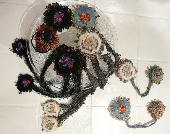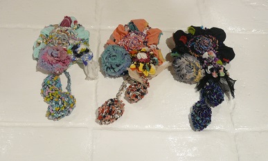 カラフルなリボンテープ使いの手の込んだコサージュ