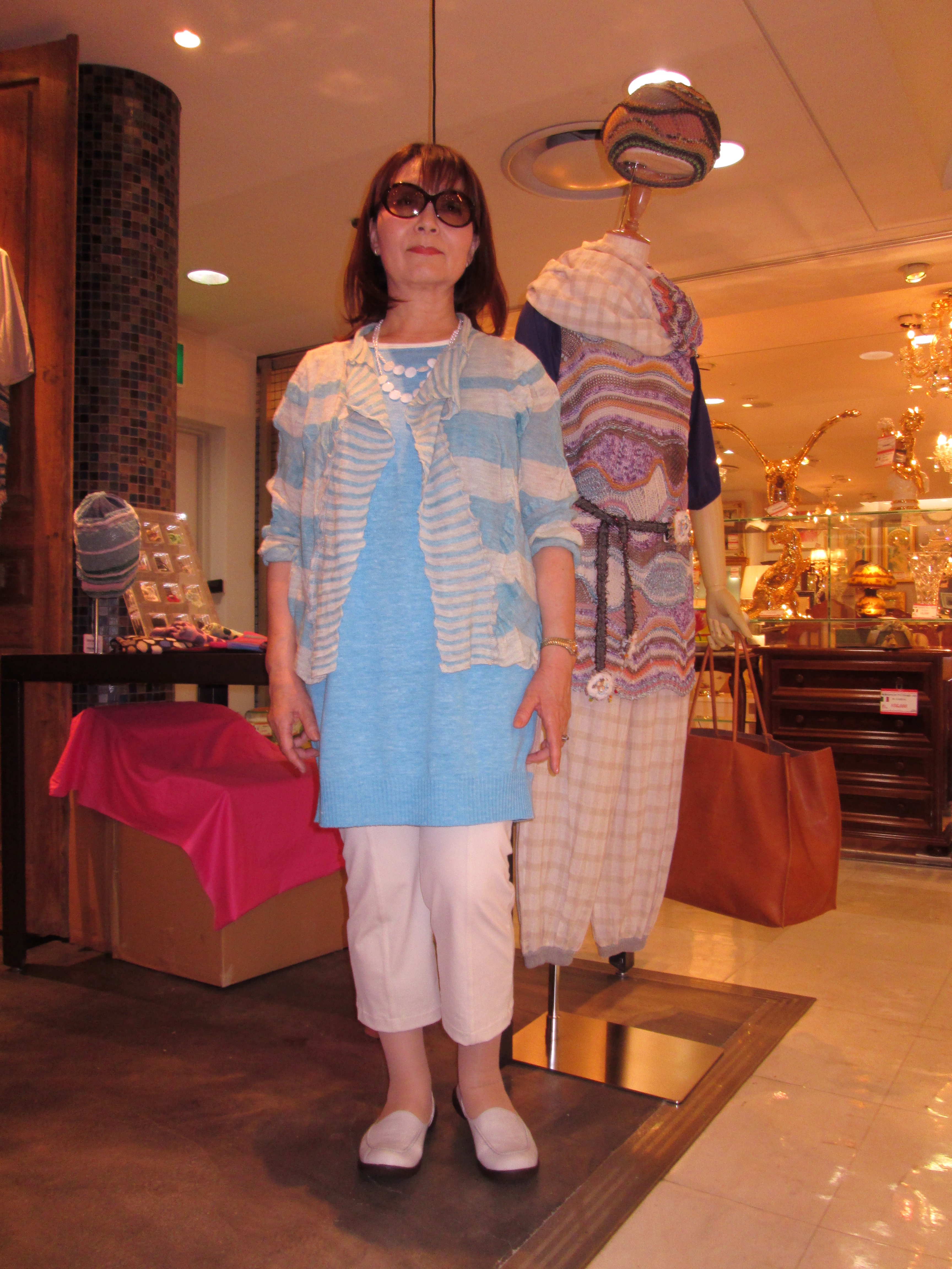 そして鮮やかなターコイズブルーのレギンス。(左側)