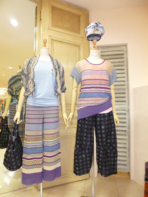 透け感が爽やかな、半袖のプルオーバーとニットパンツはセットでも合わせられ、