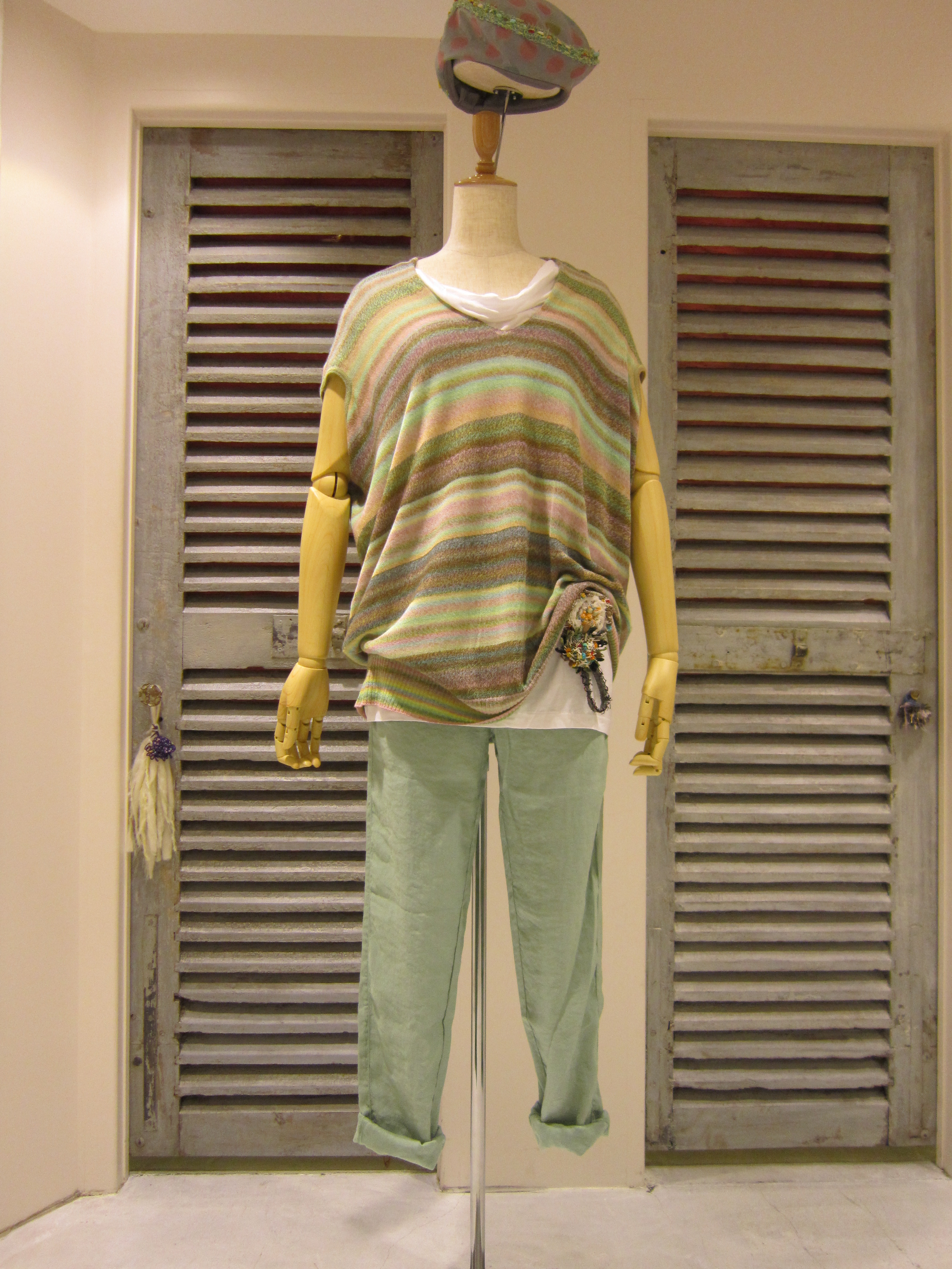 べーシックなカラーのシフォンブラウス(¥17.430)、シャーベットカラーのパンツ(¥30.450)というこの夏マストアイテムと、M.&KYOKO1押しのアイテムをコーディネート\(^o^)/ 皆様、いかがですか?