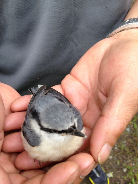 偶然、野生の鳥が木から落ちた・・・?のか?