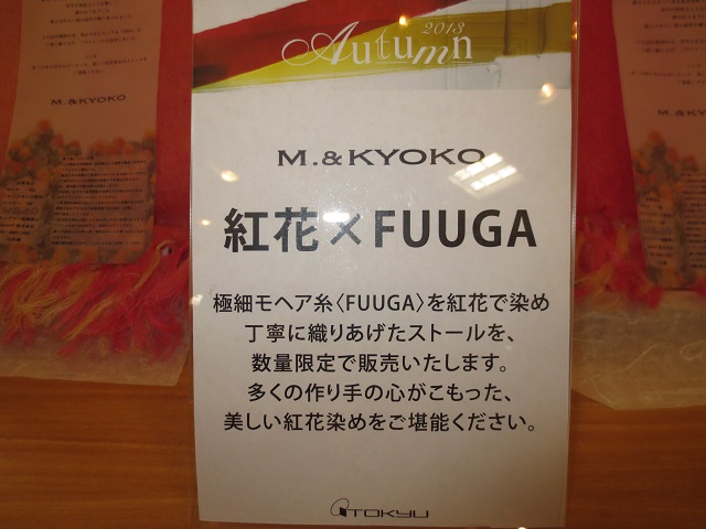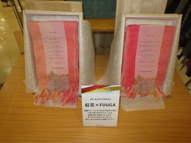 ご紹介しました紅花×FUUGをはじめ様々な素材やカラーのストールを展示販売しております。