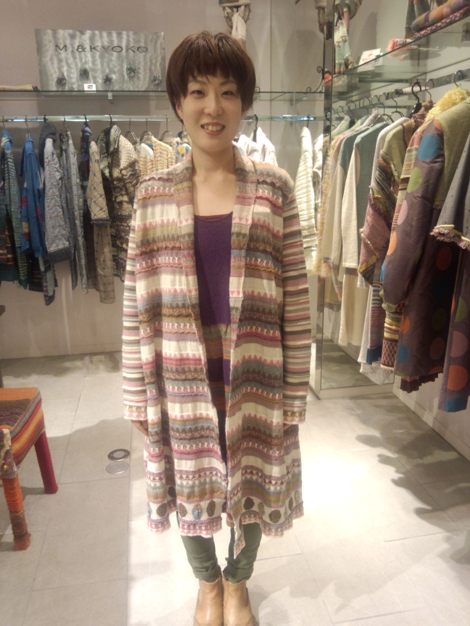 本日は、新しいスタッフの紹介をしたいと思います(*^^)vおススメ新作カーディガンを着て初登場☆