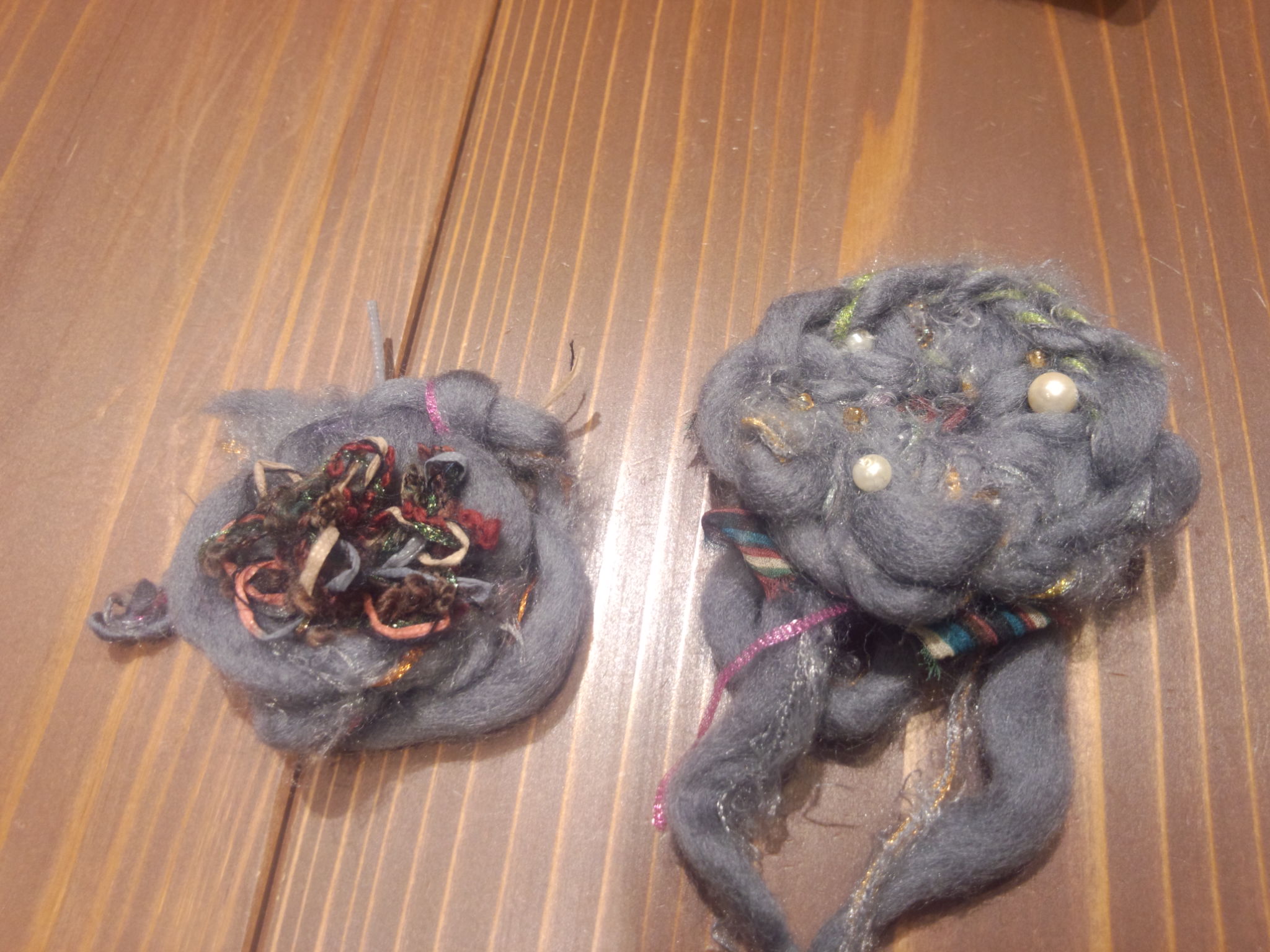 プレゼント用に包むニットバッグをアレンジしてコサージュを付けて使用して頂いております。アイデアですね(*^_^*)