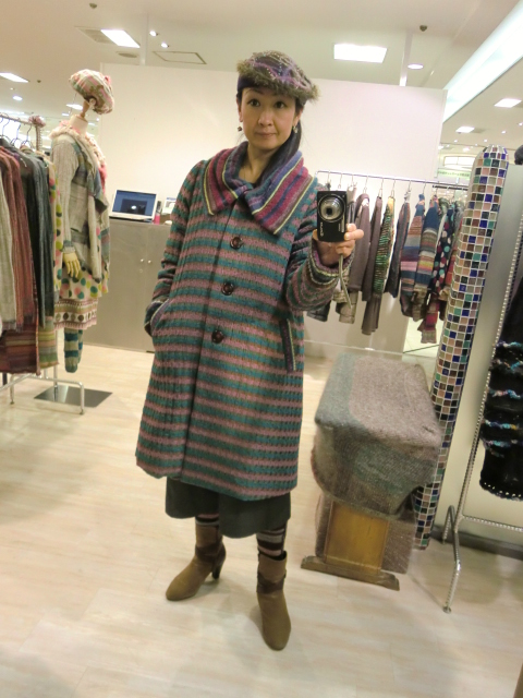 ウールキュプラのワッフル柄中綿コート¥68,250 ✿自分撮りしてみました(^_^;)着るとこんな感じです♪