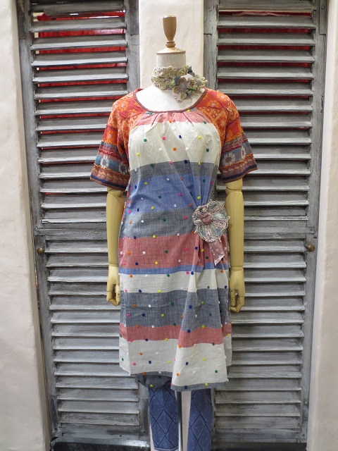 合わせてインに使用しているワンピースは、繊細なコットンを3色組み合わせ