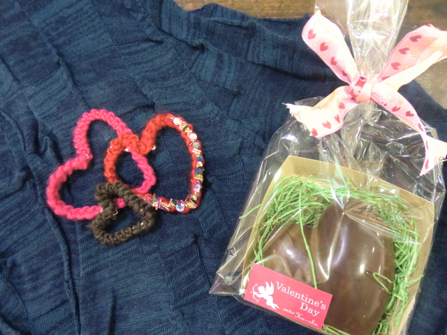 ハートが重なったこんなコサージュが完成!!! チョコレートを添えて❤❤❤