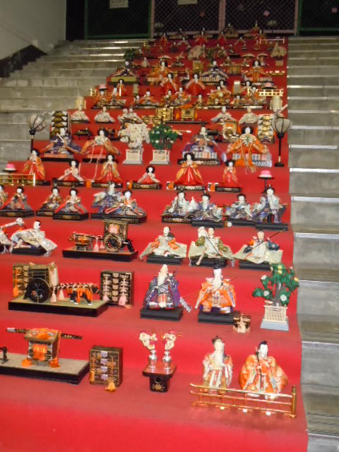 駅西口側の通路の先、使用していないホームの階段に段飾り✿夜の写真なので暗めですが、