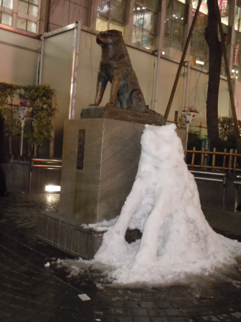 先日、ニュースでも話題になりました雪で作られたハチ公そっくりな像を早速見てきましたよ~^m^♪♪