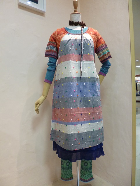 無地の生地に異素材の糸を織り込んだ、立体的な生地のチュニック!
