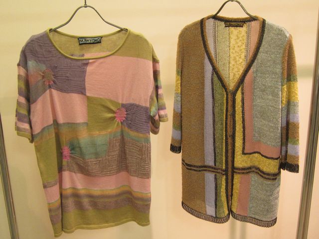 こちら右、上西さんが着ております半袖プルオーバーと、消臭効果もある和紙の入ったカーディガンです。優し~いピンクがその他パステルカラーと絡まって、じんわりと