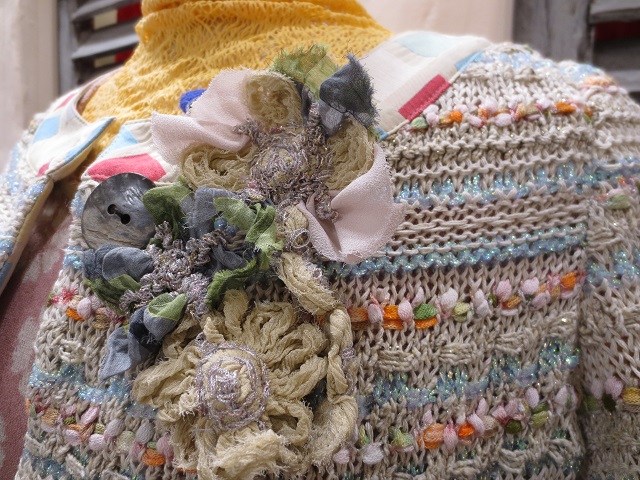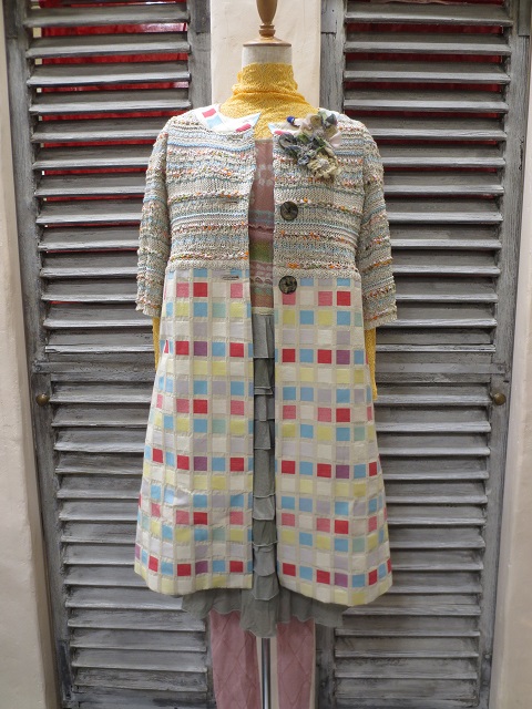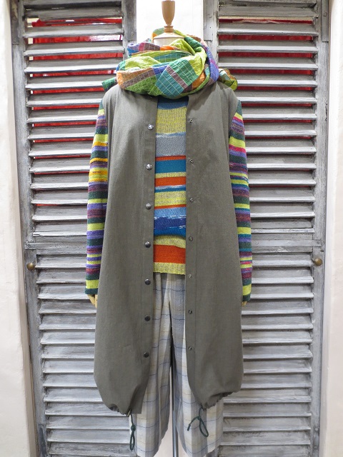 何種類ものファンシーヤーンを編みこみ、ツイード風に。