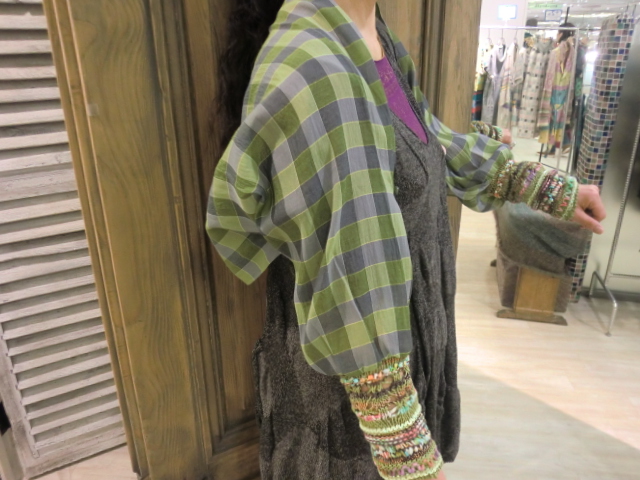 ☆コットンシルクのチェック柄と袖のカラフルなファンシーヤーンが特徴的☆