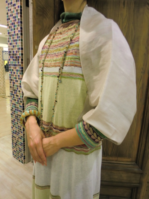 ☆こちらは麻シルクの無地♪袖は楽しいジャガード織りで、袖を通すとパフスリーブのなります☆