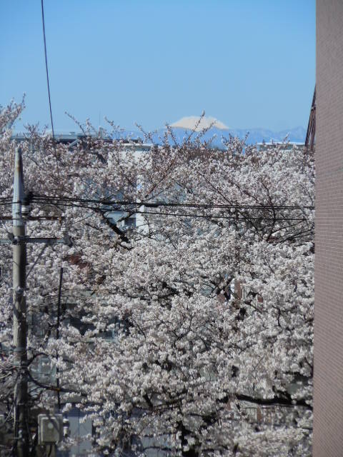 通勤途中の桜の向こうに見える富士山の風景の紹介でーす。✿