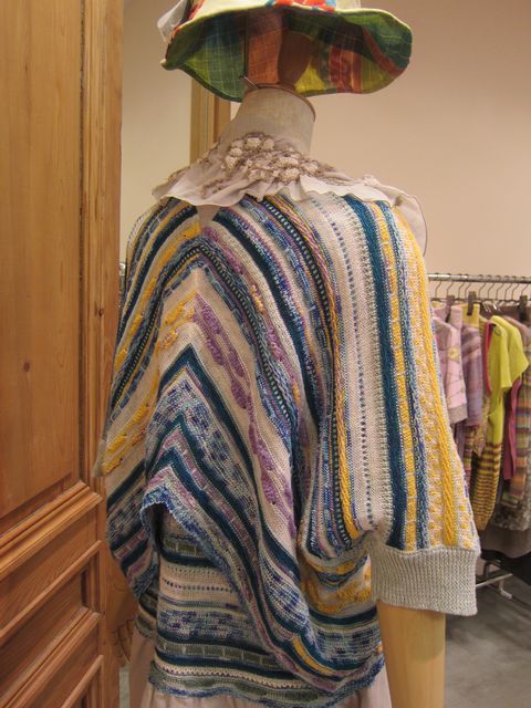 こちらのカーディガン、前と後ろのデザインが違います。前身頃はシンプルラインですが、後ろ身頃の裾が → アーチ状にデザインされております。スッキリとシャープなラインですね♥