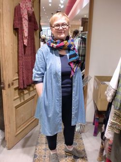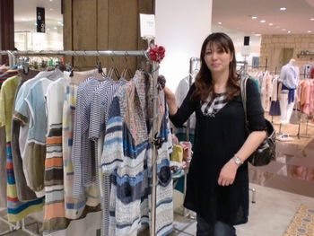 ポケットジャガードのモダン調ショールに一目ぼれ。とってもお似合いです♥