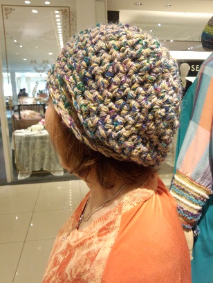 左:BAGとして 右:帽子とてお使いいただけます。 使用糸:金平糖11&雅51