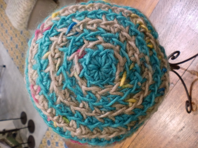 淵の部分だけは、強度とかぶった際の安定感を出すためにかぎ針を使用です。