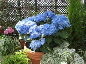 銀座のビルの屋上で 雨に濡れたあじさい発見!