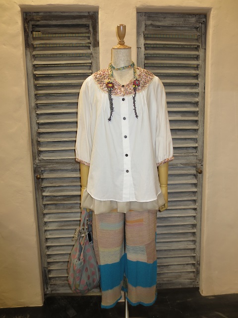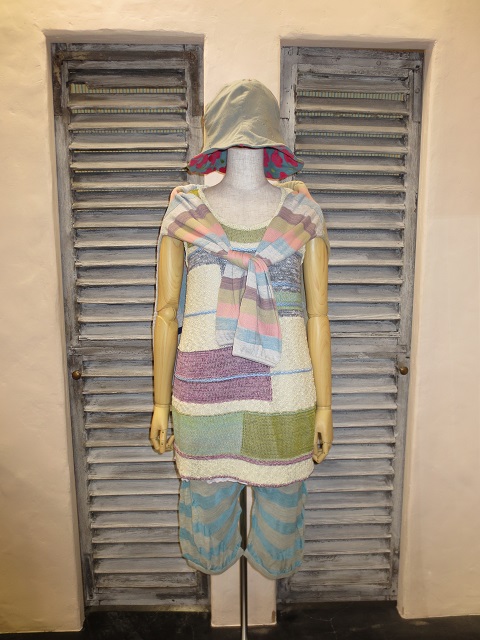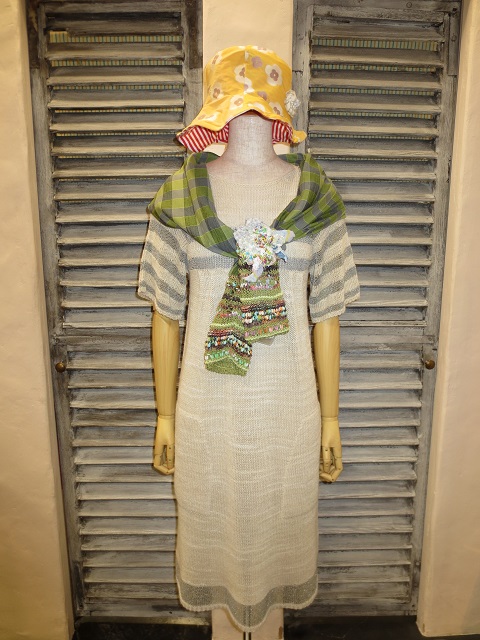 手作業を多く必要とする仕上げの難しいファンシーヤーンを多用したワンピース
