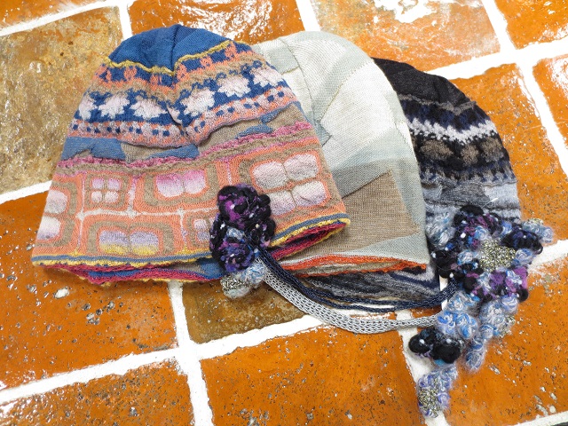 北欧をイメージした幾何学フラワー柄の帽子をプラス。