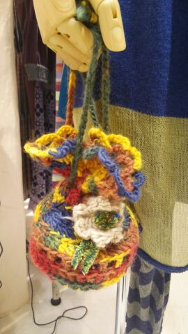 ミニBAGはお洋服との相性もピッタリ☆ BABYヘアーバンドと、どちらもぱれっと 864円 のヤーンを使用しました。