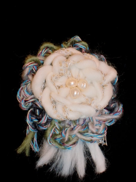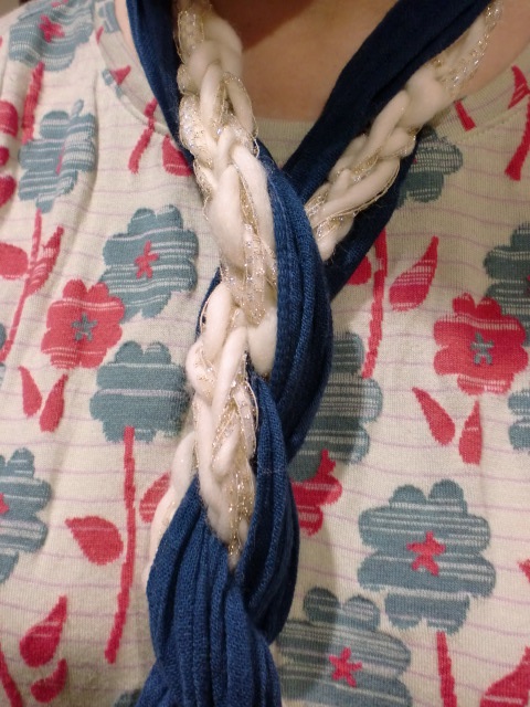 そして残りの糸でラリエットを作りご自身のストールと組み合わせてみると...