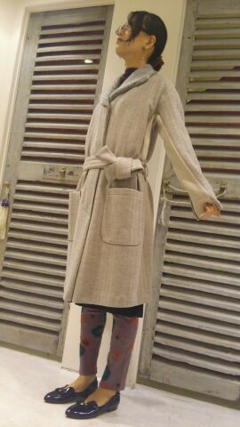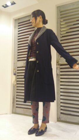 定番のニットコートも素敵ですが、今までにないエムキョーのシンプルコートもいかがでしょうか?