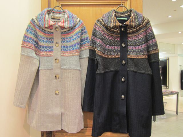 こちらはローゲージのシームレス。ノルディック柄の暖かみあるカーディガン。