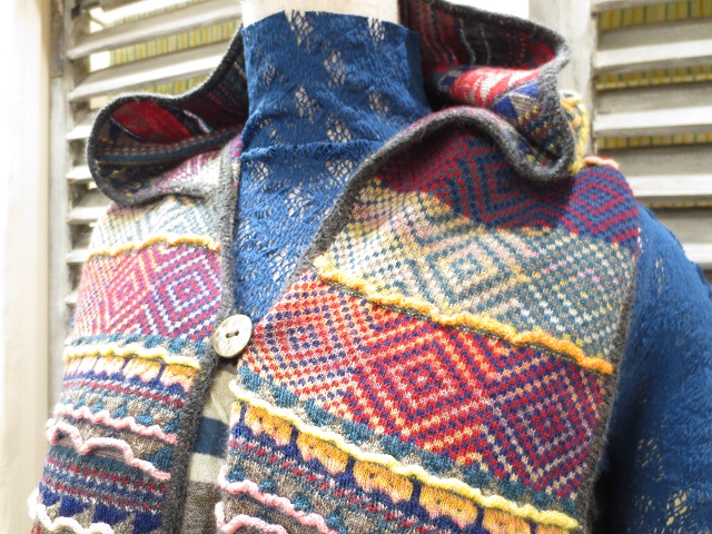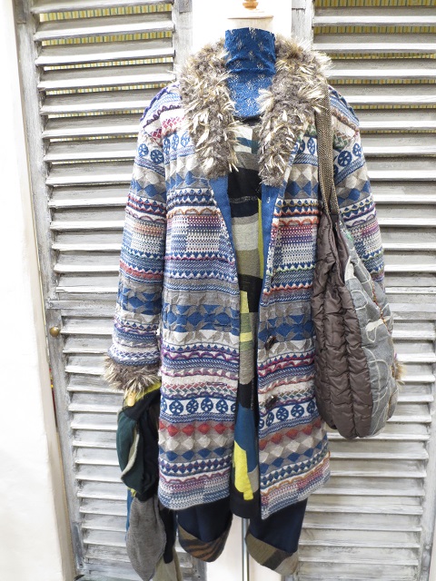 北風対策には袖・襟がかわいい、中綿入りニットコートを。