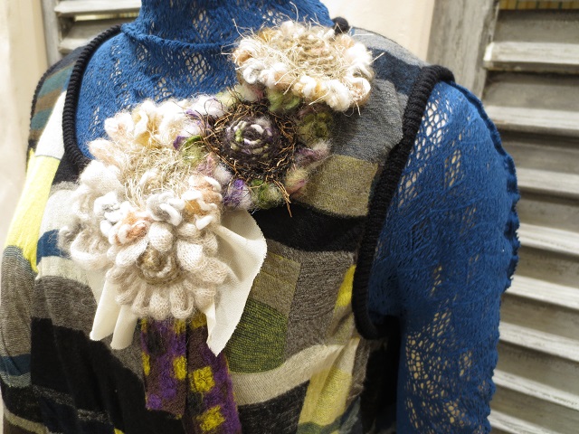 コサージュを重ね付けすることで雰囲気が出ますネ。