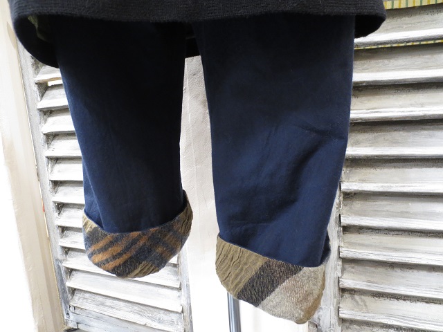 ポイントに。折り返さず、無地のパンツとしても着用できます。