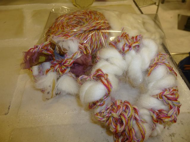 左は紡いだ糸にMASAKIヤーンのぱれっとをプラスして華やかに❁