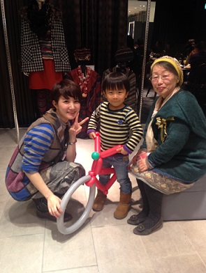 I様は、お孫様とご一緒にご来店してくださいました。グリーンのモヘアのカーディガンがお似合いですね。